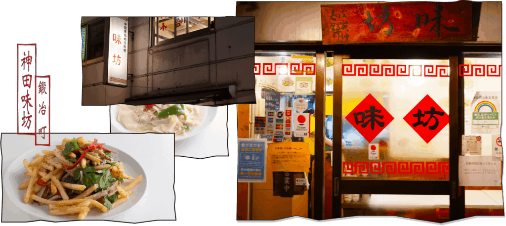 味坊(あじぼう)は、JR神田駅から徒歩3分ほどの場所に店を構える中国料理店です。